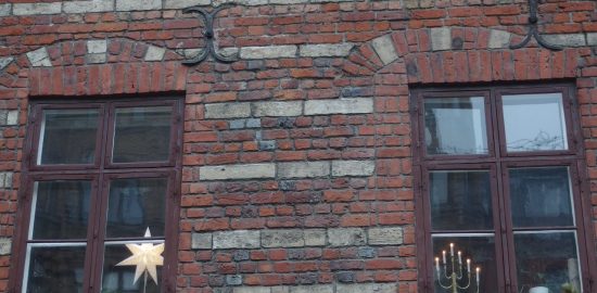 デンマークの古い窓を使った黒い建物には、